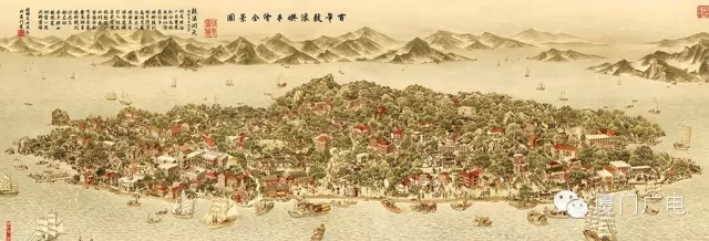 由程国文先生创作开发的《百年鼓浪屿手绘全景图》,再现的就是100年前后鼓浪屿发展最为繁荣时期的人文景观。这是讫今为止,首幅以鼓浪屿为背景完成的全景图。